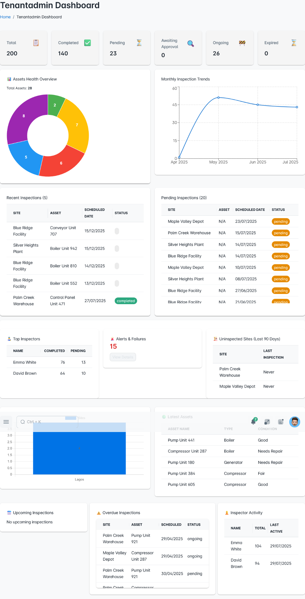 Real product view. Designed for tenant admins, supervisors, and inspectors.